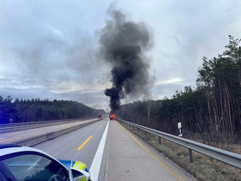 Enkenbach-Alsenborn: Brennendes Fahrzeug auf der A6